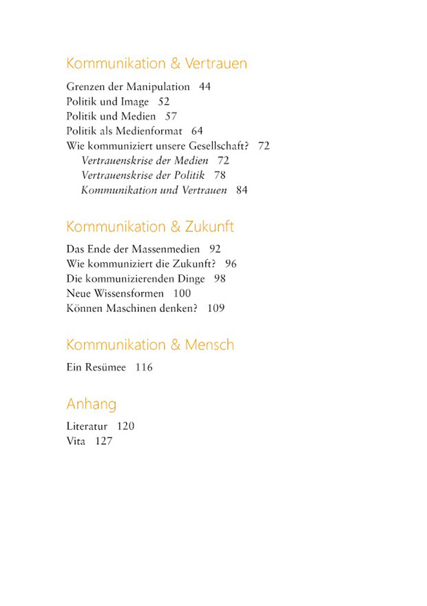 „Lieber Andreas, danke für das Manuskript von Kommunikation JETZT. Ich habe es nicht nur gern gelesen, sondern meine auch darüber etwas gescheiter geworden zu sein. Was auch kein Kunststück ist, denn Du/Ihr habt darin eine enorme Wissenswiese ausgebreitet. Eine anspruchsvolle Lektüre, ein Gang quer durch die Wissenschaften sowie die Anwendungsfelder von Kommunikation. Feinste Grüße, Martin“